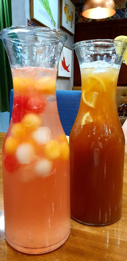 Melon Melon Sinta and Lemon Iced Tea. Melon Melon Sinta was lovely to look at with 3 kinds of melon balls… but taste was ordinary… refreshing only because it was served ice cold. The lemon iced tea was more refreshing.