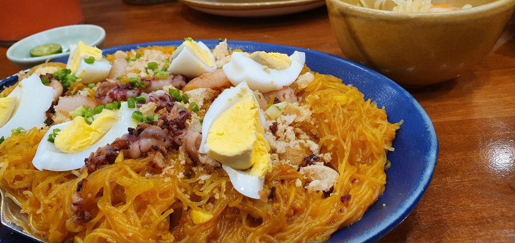 Pansit Dagat. It was basically pansit palabok topped with seafood such as shrimp and squid. The taste was so-so though. This can be skipped.