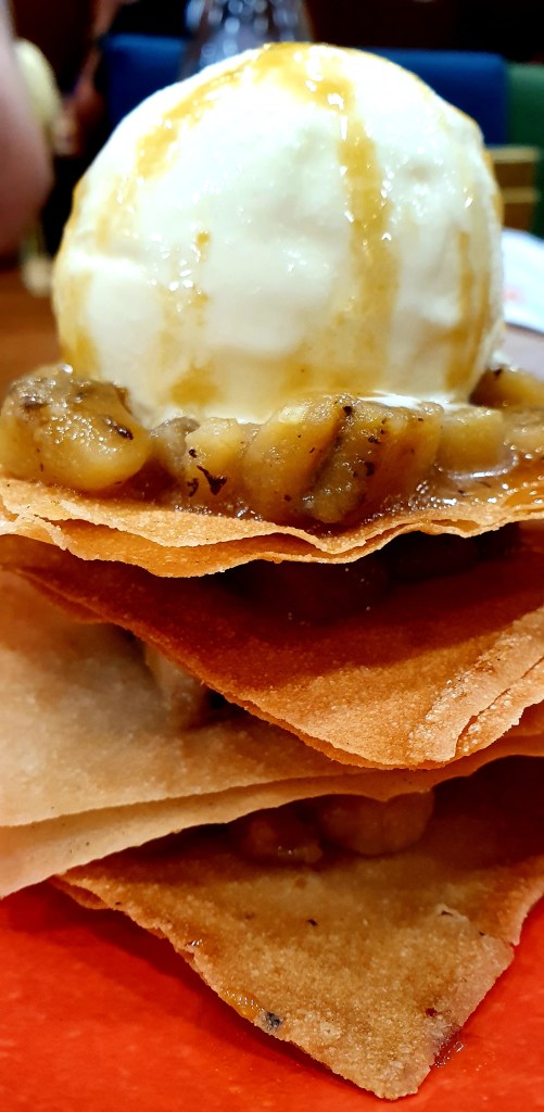 Turon Napoleones. I like this Lechoneria’s take on the classic turon served a la mode. Despite the caramel drizzle on the the vanilla ice cream, and the sugary syrupy banana slices, its sweetness is not overwhelming, probably tempered by the fried wrapper layered between the sweetened banana slices. What an exciting and fun dessert to eat!